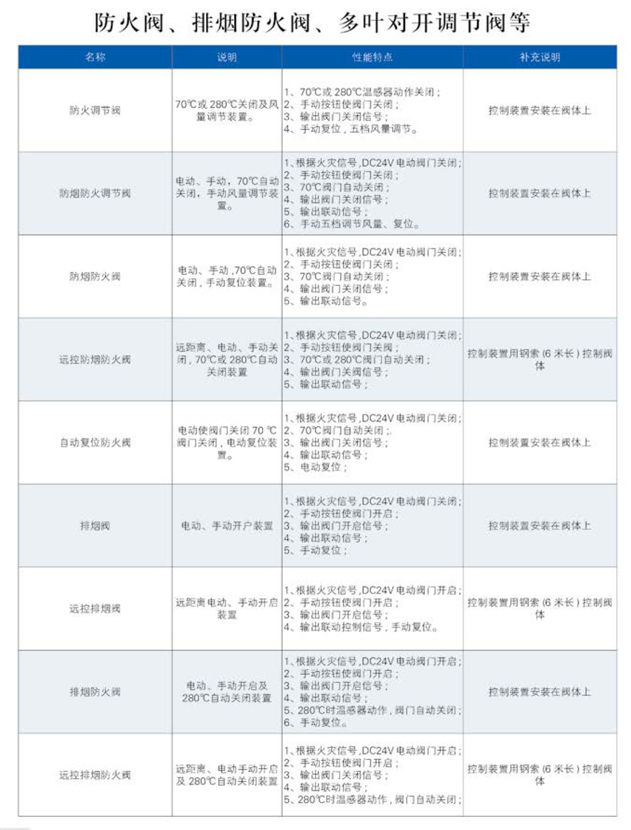 排煙風(fēng)機(jī)房入口也應(yīng)安裝排煙防火閥,以防火勢(shì)蔓延到風(fēng)機(jī)房所在層。防火閥按其功能可分為:排煙閥、排煙防火閥、防火調(diào)節(jié)閥、防煙防火調(diào)節(jié)閥等多種結(jié)構(gòu)。